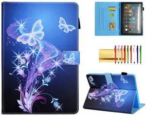 Folio Case for Fire HD 8 2020 / HD 8 Plus Tablet, Techcircle Multi-Angle Viewing Stand Cute Pattern Slim Folding PU Leather Magnetic Protective Cover with Card Holder, Sleep Mode, Purple Butterfly
