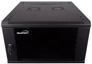 NavePoint 6U Server Cabinet Wall Mount Rack Enclosure Includes 2 Fans, Locking Glass Door, Removable Side Panels 6U Network Cabinet 23.6 Deep, 19 Inch Server Rack for IT and A/V Equipment