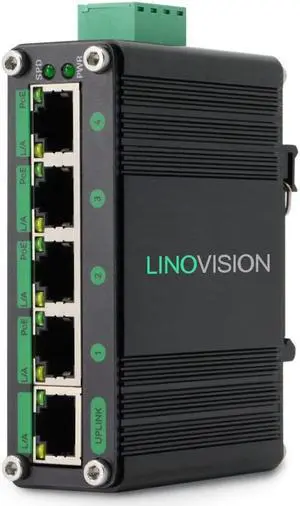 LINOVISION Industrial 5 Ports Gigabit Solar POE Switch with DC9V-54V to DC48V Voltage Booster,4 x IEEE802.3af/at 30W POE Ports @120W, IP40, Compact POE Power for Solar Power/RV Truck/VoIP Systems