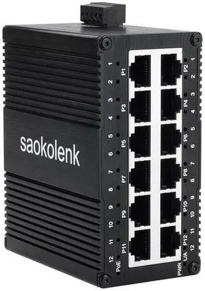 12 Ports Gigabit PoE Switch, Industrial 10/100/1000 Mbps Ethernet Switch, DIN Rail / Wall Mount Unmanaged Network Switch, -40°F to 167°F, IP40 Aluminum Shell (30W PoE Type)