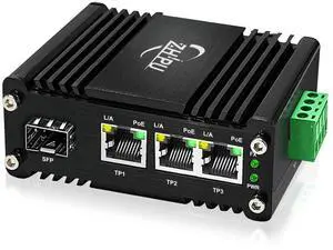3 Port Industrial Ethernet Switch Unmanaged 2 x 10/100/1000M RJ45 Copper Ports with 1 Gigabit SFP Fiber Uplink Slot Wide Temperature Range Plug and Play Commercial/Industrial Network Solution
