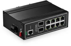 Binardat 10 Port Gigabit L2+ Managed Industrial DIN-Rail Switch, 8 Gigabit Ethernet Ports, 2 Gigabit SFP, Vlan^^Route^^Ring^^ACL^^Qos Web/Console Managed