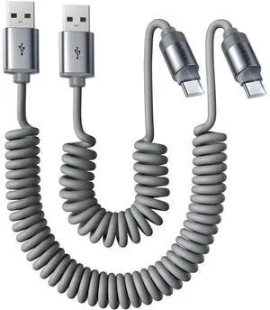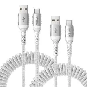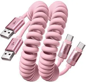 Coiled USB to USB C Cable 6FT, 2Pack Braided USB A to Type C Charger Cable for Car 66W Fast Charging Cord Compatible with iPhone 17 16 15 Pro Max, iPad, Samsung Galaxy, Google Pixel, LG Phones-Silver