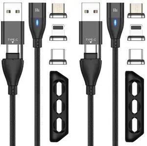 60W USB-C Magnetic Charging Cable, 6-in-1 Fast Charging Type-C Cable (2-Pack), Compatible with iPhone 15/14/13 Series, MacBook Pro, iPad, Samsung Galaxy S22, Google Pixel, and More