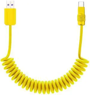 chubbycable Curly Chubby Retractable Fast Charging Cable 120W Coiled Charger Cord for Car Durable USB C Cable Compatible with iPhone 17-15 Series, Yellow+Yellow, USB-A to Type-C, 2.13FT-6.56FT