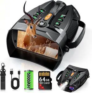 Night Vision Goggles for Adults, Night Vision Binoculars with 5000mAh Rechargeable Battery and 32GB Card, 3" HD Screen for Wildlife Observation, Hunting and Security
