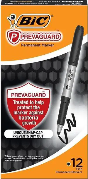 BIC PrevaGuard Permanent Marker Fine Tip Black 12Ct GAPM11BLK