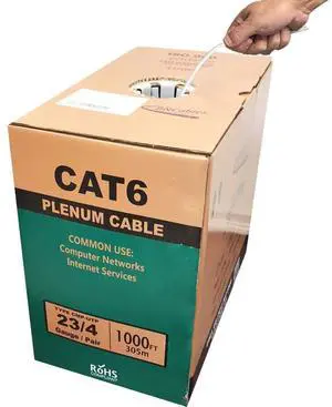 CAT6 Plenum (CMP) Cable, 1000FT | 23AWG 4Pair, Solid 550MHz Network Cable Unshielded Twisted Pair (UTP) White