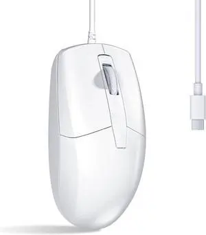 USB C Wired Mouse Type C Optical Mouse Portable Silent Comfortable for Laptop Mac MacBook Android PC White