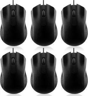 6 Pcs Wired USB Computer Mouse Bulk 3 Button Corded Wired Mouse for Laptop Desktop Computer Mice for PC Office Home Supplies Operation Christmas Bulk(Black)