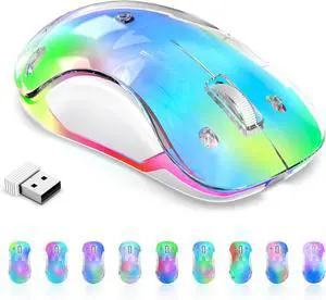 Bluetooth Wireless Mouse Transparent RGB Tri-Modes Mouse Bluetooth & 2.4GHz for Multi Device USB-C Receiver Ideal for MacBook/Laptops Rechargeable Silent Portable Cool LED Ergonomic - Green