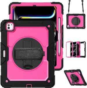 BONAEVER Case for iPad Pro 13 Inch M5 2025 M4 2024 with Built-in Screen Protector, 360° Rotating Stand, Adjustable Shoulder Strap, Pencil Holder Rose Red