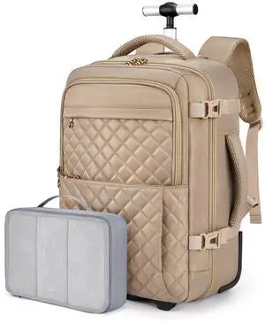 BAGSMART Rolling Backpack for Women, Wheeled Backpack with Packing Cube, Travel Back pack with Wheels, Carry On Suitcase Bag 17 Inch Large Roller Daypack, Champagne