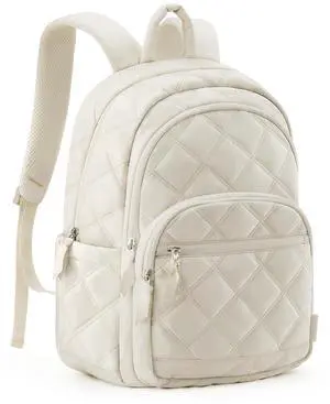 BAGSMART Travel Laptop Backpack, College Backpack for Women, Quilted Small Computer Bookbag, Water-Resistant 15.6 Inch Laptop Casual Bag, Vanilla