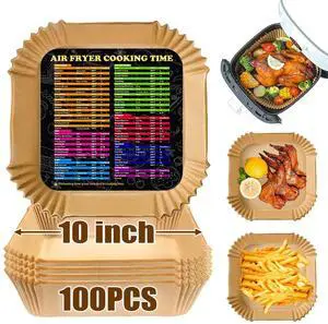 Air Fryer Liners Disposable, Large Airfryer Liners 10 Inch Square, Non-stick Air Fryer Paper Liners Oil Resistant, Waterproof Air Fryer Parchment Paper Liners for Roasting Microwave