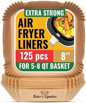 Air Fryer Liners Disposable, 125Pcs Parchment Paper, 8 Inch Non-stick Air Fryer Paper Liners, Unbleached Square Airfryer Liners for 5-8QT Air Fryer, Baking, Roasting Microwave