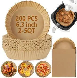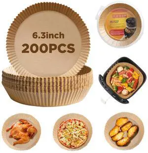 200Pcs Air Fryer Disposable Paper Liner, Round Non-Stick Air Fryer Liners Parchment Paper for Baking Roasting Microwave Oven (6.3 inch)