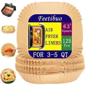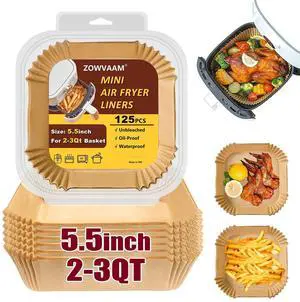 Air Fryer Paper Liners, 125Pcs Air Fryer Disposable Liners, Non-Stick and Oil Proof for Easy Cleanup, 8 Square for 5-8 qt Basket