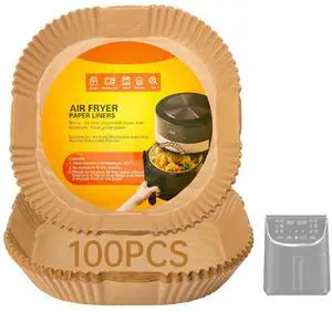 Air Fryer Paper Liners 100 Pack Parchment Paper Sheets,Non-stick for Air Fryer Basket,Microwave Safe,Disposable and Greaseproof (Brown, 7.5Inch Square)