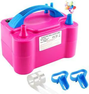 Electric Air Balloon Pump, 110V 600W Rose Red Portable Dual Nozzle Inflator/Blower for Party Decoration