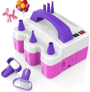 Electric Balloon Pump, 3-in-1 Portable Electric Air Balloon Blower Machine Balloon Pump 2 Motor Dual Nozzle Balloon Inflator for Latex 260Q Long Foil Balloons Swimming Rings Air Beds (Purple)