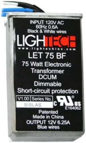 GE Lightech 66946 Electronic Transformer DCUM, Dimmable, Bottom Feed, 12 volt 75 watt Output, 120 volt input, LET 75BF