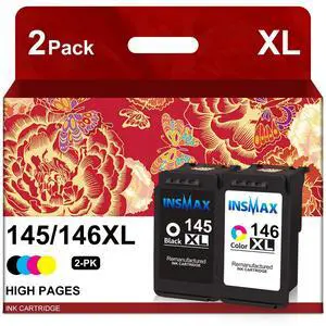 INSMAX PG-145XL CL-146XL Ink Cartridges Combo Pack Replacement for Canon 145XL/146XL 145 146 High Yield for PIXMA TS3110 iP2810 MG2410 MG2510 MG2910 MG3010 (1 Black, 1 Color)