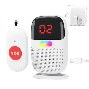 Caregiver Pager System with Digital Display for Elderly Assistance, Fall Prevention, and Nurse CallingWearable Wireless Pager for Patient Help at Home(1 Call Buttons + 1 Receivers)