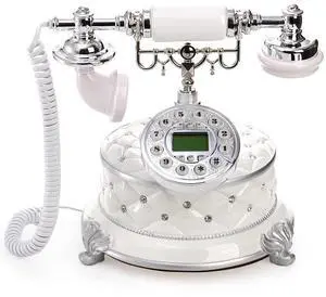Jucoan Vintage Retro Landline Telephone with Push Button and LCD Display Elegant White Luxury Corded Desk Phone for Home Office Hotel Bar Decor, Christmas New Year Gift for Friends