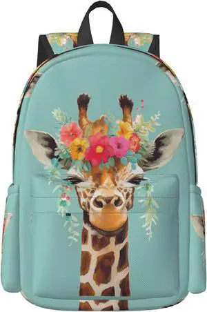 FeHuew 16 inch backpack Giraffe with Floral Headpiece Laptop Backpack Full Print School Bookbag Shoulder Bag for Travel Daypack