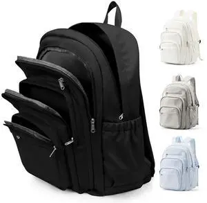 Cute Aesthetic Laptop Backpacks for Women Large College Backpack for Travel Work Preppy Lightweight Waterproof Daypack (Black)