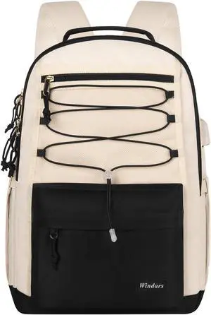 WINDARS School Backpack for Teens Girls, Aesthetic College Backpack Large Bookbag for Women Students Fashion 15.6 Inch Laptop Bag for Work Travel (Black Beige)