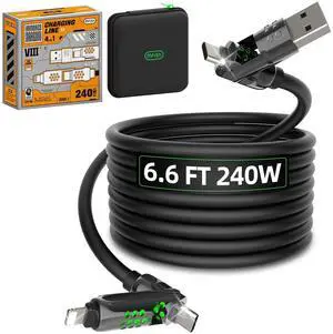 Mfish 4 in 1 Charging Cable, 240W USB-C Cable 6FT with Carrying Case, Chubby USB A/C to Lightning/C with Light, Multi Fast Charging Cable for iPhone Air 17 16 15 Pro/MacBook/iPad/Samsung/Carplay Black