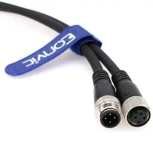 Eonvic Industrial M12 4 Pin Male to Female Sensor Cable M12 A Code Straight Aviation Connector Molding Electrical Cable Profibus Cable, 5M, Black