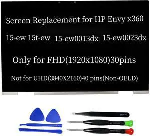 Replacement for HP Envy x360 15-ew 15t-ew 15-ew0013dx 15-ew0023dx 15.6" FHD LCD Display Touch Screen Assembly Bezel with Board Silver Only for FHD(1920x1080) 30pins(Non-OELD)
