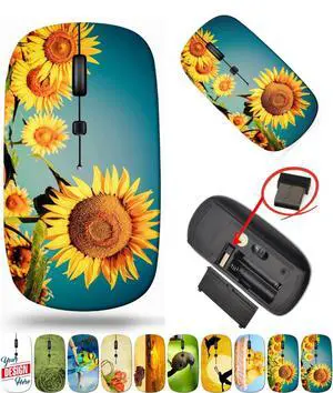 maizi Mouse Wireless for Mac Computer Personal Laptop, Mice Wireless 30002157 Sunflower Field Under 2.4G Lightweight with USB Receiver Printed in USA