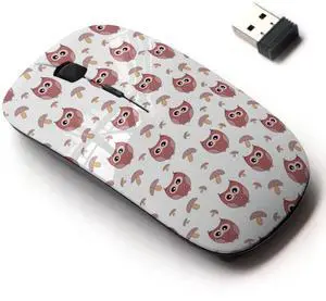 2.4G Wireless Mouse with Cute Pattern Design for All Laptops and Desktops with Nano Receiver - Beautiful Childrens owl Mushrooms