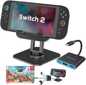 Switch 2 Dock kit with Switch Stand for Nintendo Switch 2 for HDMI 2.1+PD +USB A 3.2 compatibale with Laptop+MacBook ! ! Require Manual firmware Update for V21 or Above ! ! (Update Support Available)