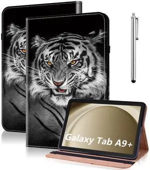 TUOLISG Case for Samsung Galaxy Tab A11 + Plus/A9 + Plus 5G 11 Inch 2025/2023, PU Leather with Elastic Band & Card Slots, Multi-Angle Stand Tablet Cover - Black Tiger