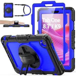SEYMAC stock Tablet Case for Lenovo Tab One (TB305FU) 8.7 inch Drop-Proof Protection Cover with 360 Rotate Stand & Strap [Pen Holder] & Screen Protector/K9 2025, Deepblue+Black