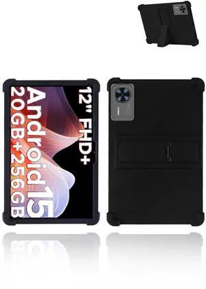 for DOOGEE T36 2025 Android 15 Tablet,12 inch Tablets Case,Soft Silicone Adjustable Stand Cover Lightweight Kids Friendly,Black.