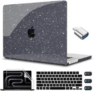 CISSOOK Sparkly Glitter Star Case for MacBook Pro 14 Inch M5 A3434 M4 A3112 A3185 A3401 A2918 A2992 M3 A2779 M2 A2442 M1 Pro Max, Black Hard Shell Case for MacBook Pro 14 2025-2021 Release