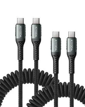 USB C Cable for Car 3FT/6FT, Coiled USB C to USB C Cable Fast Charging 66W, Braided USB Type C Charger Cord Compatible with iPhone 17 16 15 Pro Max, Samsung, Google Phones and More Type C Devices