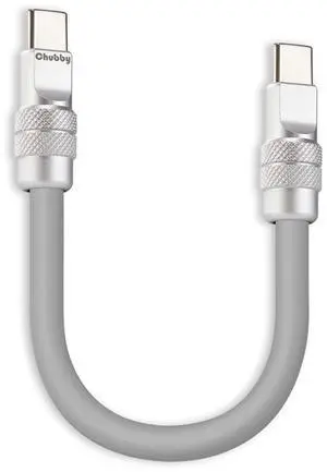 chubbycable Cute Chubby 240W Short USB-C Cable Power Bank Fast Charging Cable Silicone Charger Cord Compatible with iPhone 17-15 Series iPad, Gray, Type-C to Type-C, 10 inch