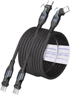 EndlesShine USB Cable Type C to C 180 Rotation PD 240W (2- Pack 6+6ft) USB2.0 480MBPS & Data Transfer Cable Phone Charge Cord for Type C Devices (Black)