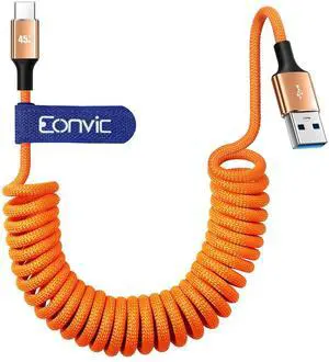 Eonvic USB A to USB C 45W Fast Charging CarPlay Cable Data Transfer Braided Coiled Cable for iPhone 15/16 Pro Max Galaxy S24/S23/S22 Laptops Camera (Orange, Coiled 40cm)