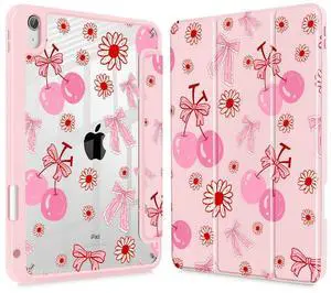 Lepeoac Case for iPad Air 13 Inch (M3) 2025, (M2) 2024 - [Built-in Pencil Holder] Shockproof Cover with Clear Transparent Back Shell, Auto Sleep/Wake Cover, Cherry Bow P705