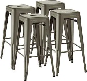 Furmax 30 Inches Metal Bar Stools - High Backless Indoor-Outdoor Stackable Kitchen Set of 4 (Gun)