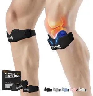 2 Pack Patella Knee Brace - Knee Support and Pain Relief, Running, Hiking, Basketball, Jumpers Knee, Tendonitis, Adjustable Strap Patellar Tendon Stabilizer