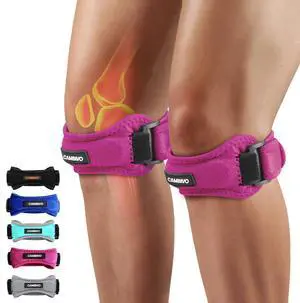 Patella Tendon Knee Straps 2 Pack for Knee Pain Relief, Knee Brace for Women &Men with Extra Straps, Knee Support for Running, Hiking, Soccer, Basketball, Jumpers Knee, Tennis (Pink)